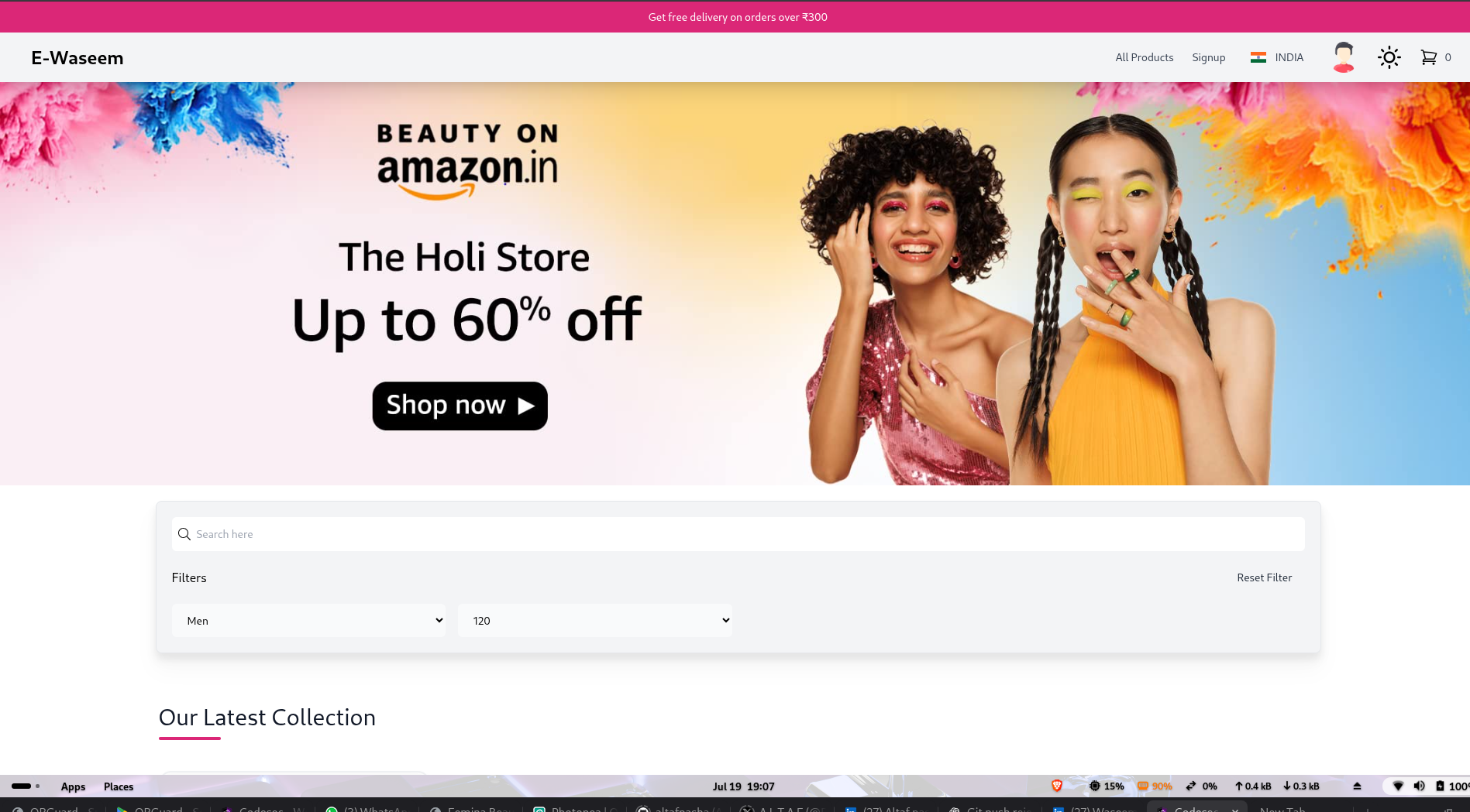 E-Waseem is an e-commerce website developed by Waseem Akram.